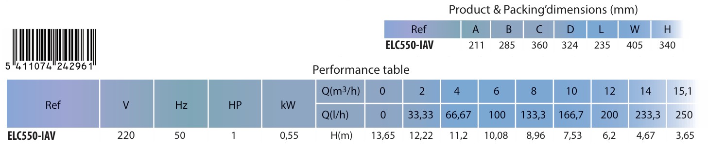 | Voordelen | Professionele kwaliteit, leegpompen van ondergelopen kelders, leegpompen watertanken, opvangbekken rivierwater,… Laag verbruik ten opzichte van prestaties |